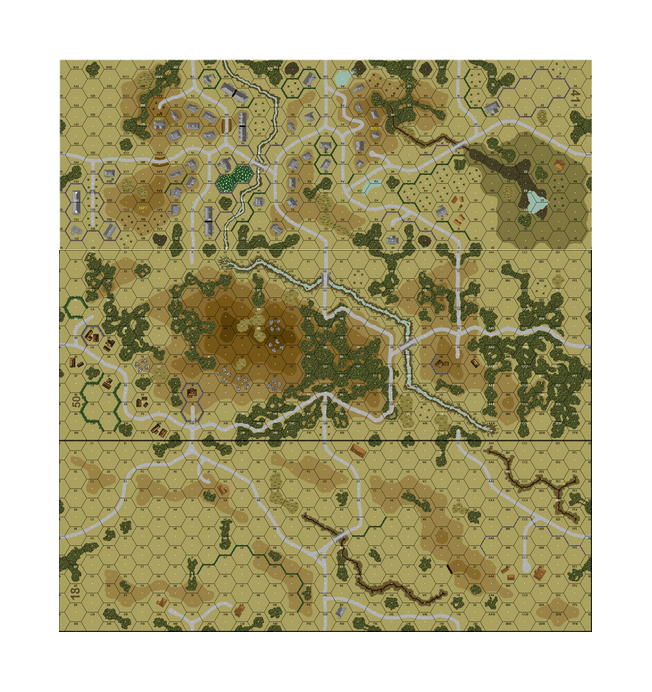 | Misc Rules: | Mud (E3.6), Platoon Movement: NA, Stream: Deep, Roads: Paved |
