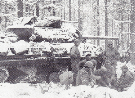 In the evening twilight, forward elements of the Kampfgruppe Peiper approached the Neufolin Bridge near Habiemont. But the 291st Engineer Combat Battalion detonated 2500 pounds of TNT and destroyed yet another vital bridge the Germans needed to reach their objective. Obersturmfuher Peiper refused to let this stop his advance and dispatched two half-track-mounted panzergrenadier companies to locate alternate crossing sites. One company crossed Lienne Creek at Forges on a bridge that was too weak to support the weight of panzers. Turning south, the panzergrenadiers made progress toward highway N-23. Approaching Habiemont, the Germans encountered Major McCown's 2nd Battalion, 119th Infantry and two supporting tank destroyers. . .Attacker: German (SS) (Elements 2nd SS Panzer Grenadier Regt, Kampfgruppe Peiper)