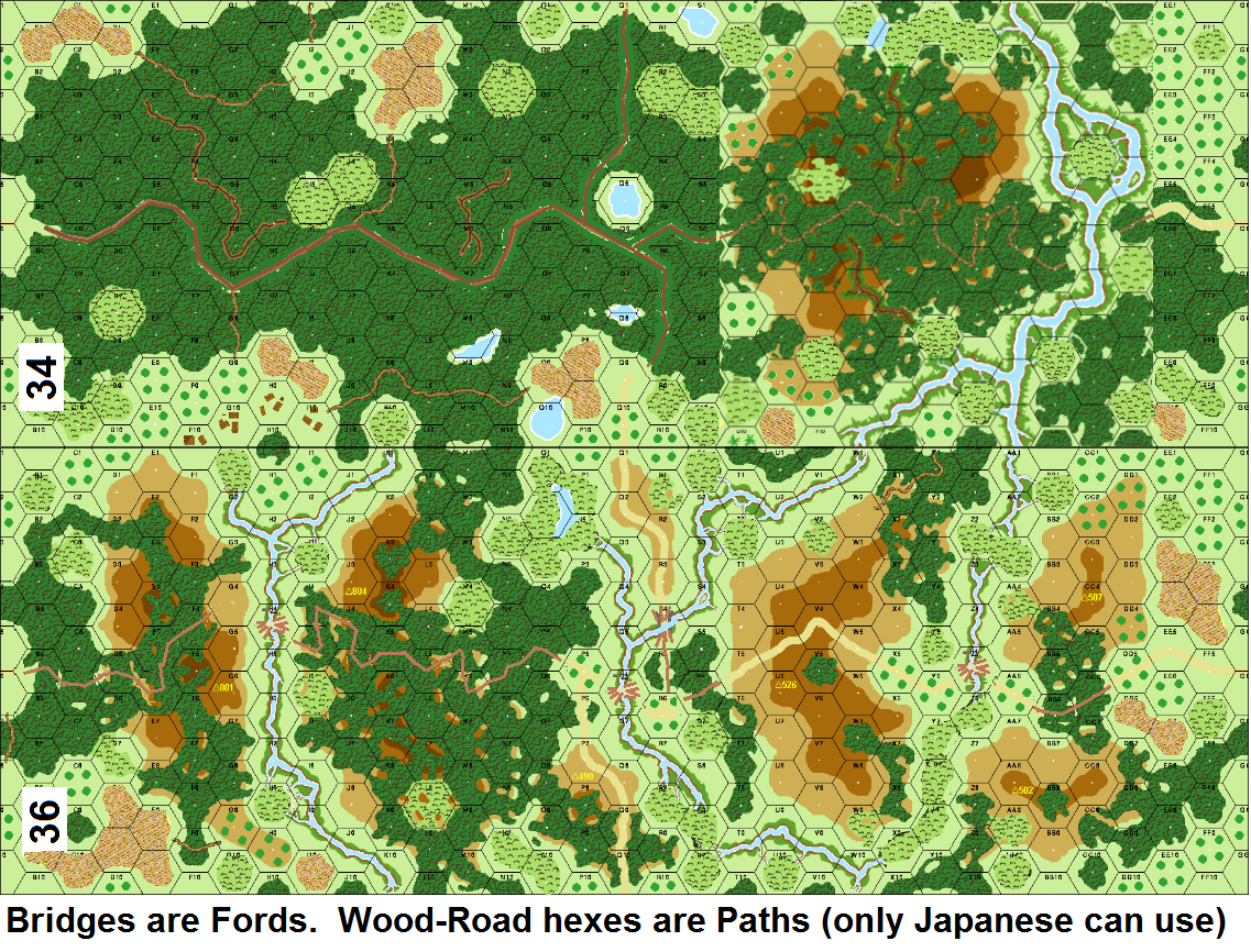 | Misc Rules: | Ov1, PTO NOT in effect. Road-Wood hexes are paths. Only Japanese can take advantage of Paths. |