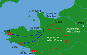 "A War of Corporals" - After the piercing of the front at Avranches, the Americans launched their divisions in all directions, notably in Brittany. Brest became the primary target of the US VII Corps. The city garrison was formidable. It consisted of 30,000 men stiffened by the parachutists of the 2nd Fallschirmjager Division, veterans of the Eastern Front. The assault by three divisions of VII Corps was launched on 25 August. Despite their numerical advantage, the Americans were dealt with harshly. The 23rd Infantry Regiment finally managed to reduce the exterior defenses by 8 September, but the paras were still holding firm. It would be necessary to engage in difficult street-fighting. It was a war of corporals according to General Robertson.Attacker: American (23rd Infantry Regiment, 2nd Infantry Division "Indian Head")