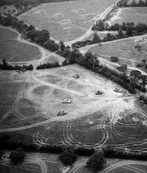 "Trapped" - Operation Cobra, started 5 days earlier, was very successful. The remnants of two Infantry Divisions (the 91st and the 243rd), paratrooper elements of Corps Meindl, and particularly the major part of 2nd SS Panzer Division “Das Reich” and of the 17th SS Panzergrenadier Division “Gotz von Berlichingen” where trapped in the so called Roncey pocket. Their only hope was to break the American lines toward the south and the southwest in order to join the German front line. Several attempts failed in the night from the 28th to the 29th. On the morning of the 29th at 0900, a particularly strong attack started in La Pinetiere, a hamlet around a crossroads. Several hundred paratroopers and SS, supported by 15 Panzers, pushed back a company of the 4th Infantry Division, placed there in protection, 1 km in front of the 78th Armored Artillery Battalion of the 2nd Armored Division. Unable to retreat anymore, the GIs, now supported by 2 M7 batteries, 4 M10 and 2 M16, blocked the German progression.Attacker: German (SS) (Panzergrenadier Regiment "Deutschland", 2nd SS Panzer Division "Das Reich"/6th Paratrooper Regiment and 2nd SS Panzer Regiment)