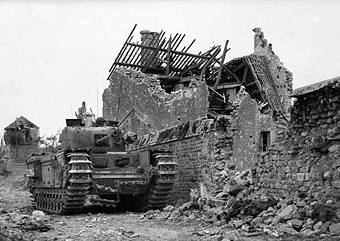 "Country Party" -- In order to hold the German armored forces in the British Normandy sector and to avoid them counter-attacking the "Cobra" offensive, Montgomery decided to launch the "Bluecoat" operation. The operation goal was to seize the Caumont area, obligating the Panzers to go for a large bend if tempted to go west and losing critical time in the process. The main objective was Hill 309, pivot of the German defense. The 15th Scottish Division was tasked with the attack, supported by Churchills, powerful artillery and numerous special engines (Funnies). The attack front was narrow, but countless hedges cutting the terrain favored the defense. On the morning of July 30th, the largest attack ever undertaken by infantry tanks started.Attacker: British (9th Cameronians, 227th Highland Brigade/2nd Squadron and Regimental AA Troop/1st Squadron Grenadier Guards, 6th Grenadier Tank Brigade)