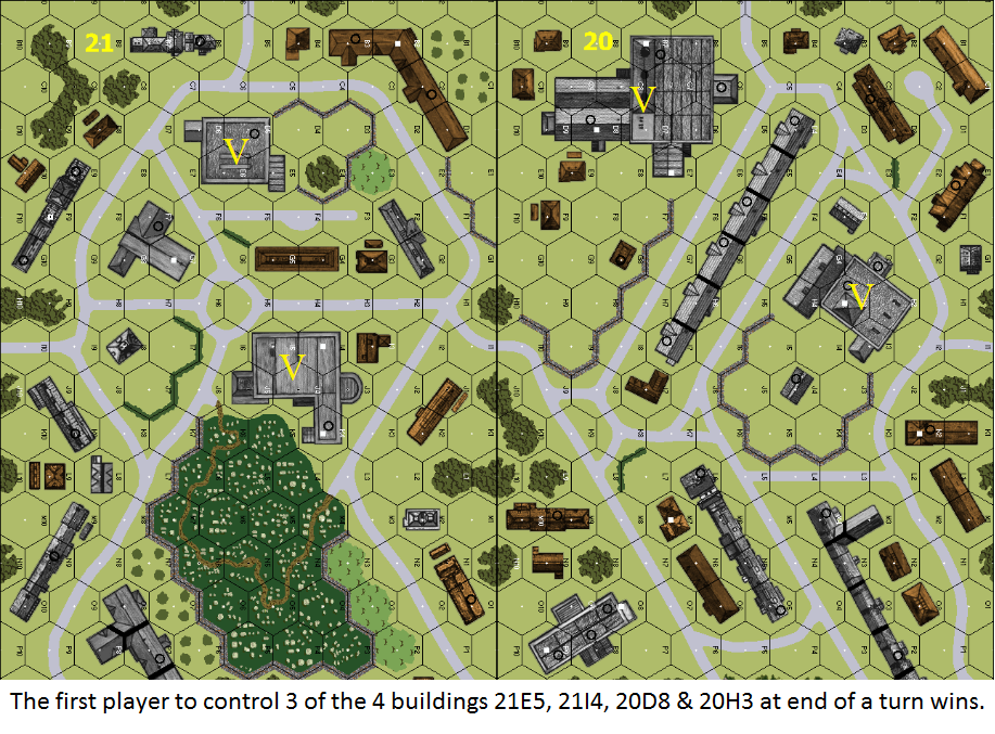 | Misc Rules: | Simultaneous setup, dr for first move, play until VC met. D: FB (B23.9), Fanatic (A10.8) |
