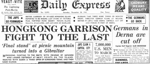 On 8 December 1941, the Japanese 38th Infantry Division received the code words "Hana-Saku, Hana-Saku" (literally "flowers abloom. flowers abloom") which signaled the start of the Japanese attack on the British Crown Colony of Hong Kong. The Kowloon peninsula was taken with only light casualties. A request to surrender Hong Kong Island was refused. During the night of 18/19 December the Japanese streamed across from the mainland. Canadian A Company, and one platoon of D Company, Winnipeg Grenadiers were ordered to hold Mt.Butler.Attacker: Japanese (3rd Battalion, 230th Infantry Battalion)