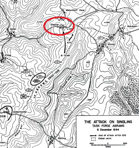 Full description of battle with pictures can be found here: http://www.history.army.mil/books/wwii/smallunit/smallunit-singling.htmAttacker: American (Team B, Task Force Abrams (CCA, 4th Armored Division))