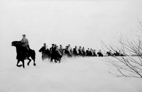 12 Kilometers north of Rusa, Russia, following the successful breakthrough of the German lines in front of Moscow, Cossack cavalry formed into battle groups behind the crumbling front. These bands of cavalry attacked German headquarter units, supply columns and depots, as well as important bridges and rail lines. Two of these battle groups, under the command of General Dovatar, caught up with the 252nd German Infantry Regiment after days of chase. They attacked the harried infantry who waded across the frozen Rusa River.Attacker: Russian (Elements of the 22nd and 103rd Cavalry Regiments)