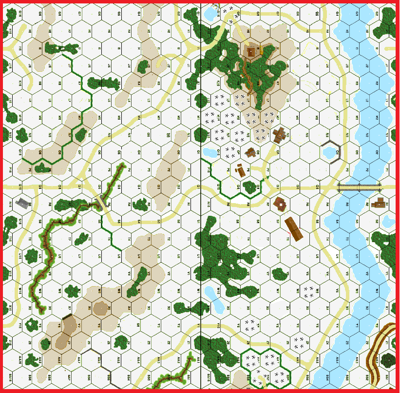 | Misc Rules: | GS, DS (roads plowed), Ov3 w D: Ski Jump (Lvl 4 in Lvl 2 hex, OBA spotter there) |