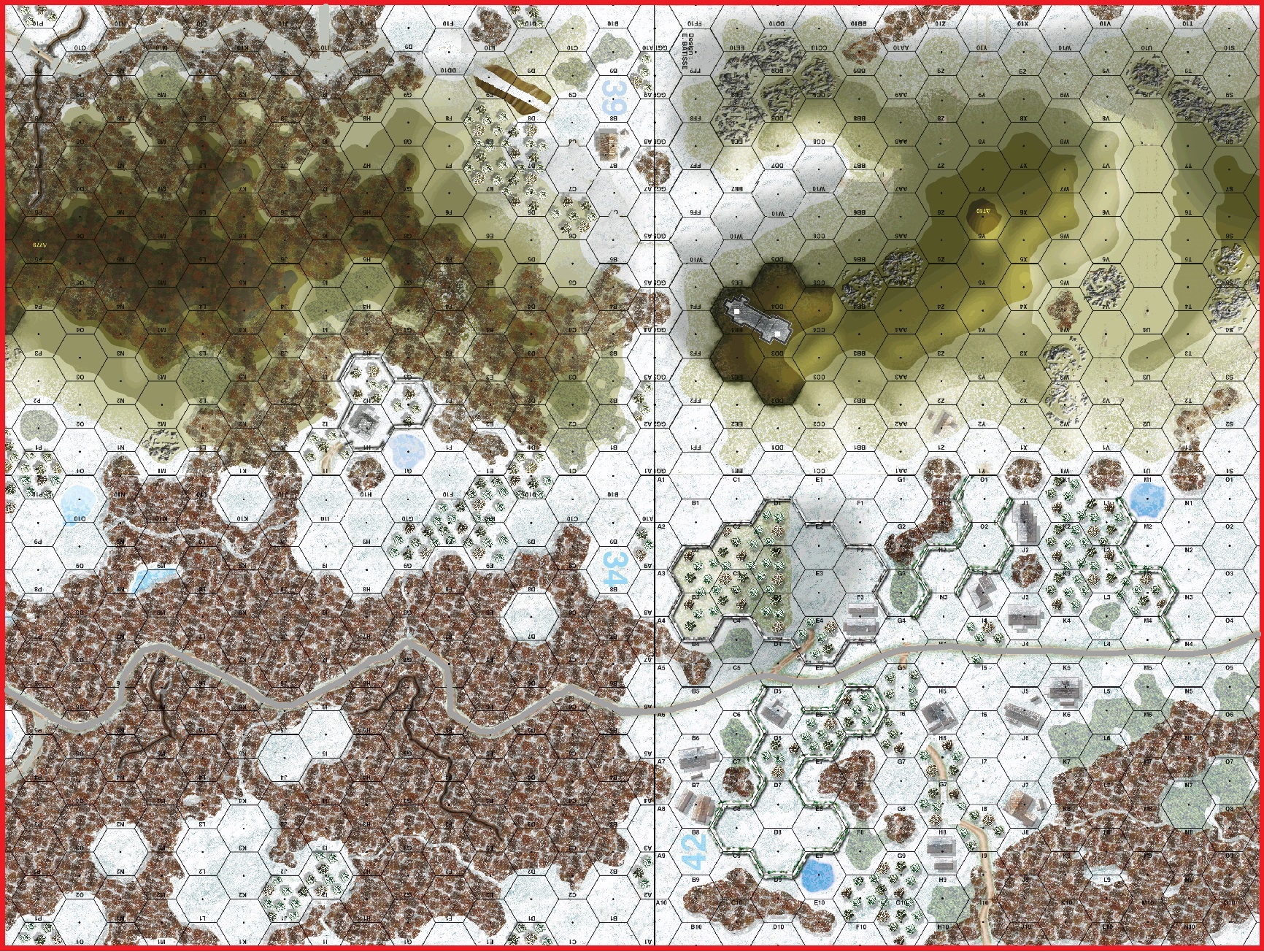 | Misc Rules: | Deep Snow (E3.73), AH (B10.211), Pine Woods (B13.8), One paved plowed road. WC (E3.712) both sides. |