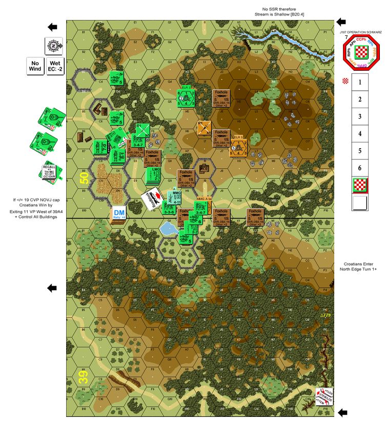 Operation Schwarz was the largest Axis anti-partisan operation. The operation attempted to encircle and crush the NOVJ partisan stronghold in the mountainous area between the Ceotina and Piva Rivers in southern Bosnia.Attacker: Croatian (2nd Battalion, 369th Croatian Legion)