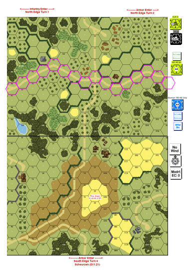 | Misc Rules: | Bocage. Level 1 Grain is Level 2 Hill. D: Assault Engineers, all Pz IVHs have Schuerzen |