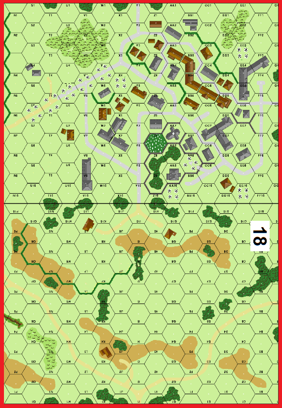 | Misc Rules: | CI (E2.4), Bldgs: Single Story. No rowhouses, treat bars: OG. A: AS (E7), D: FB (B23.9) |
