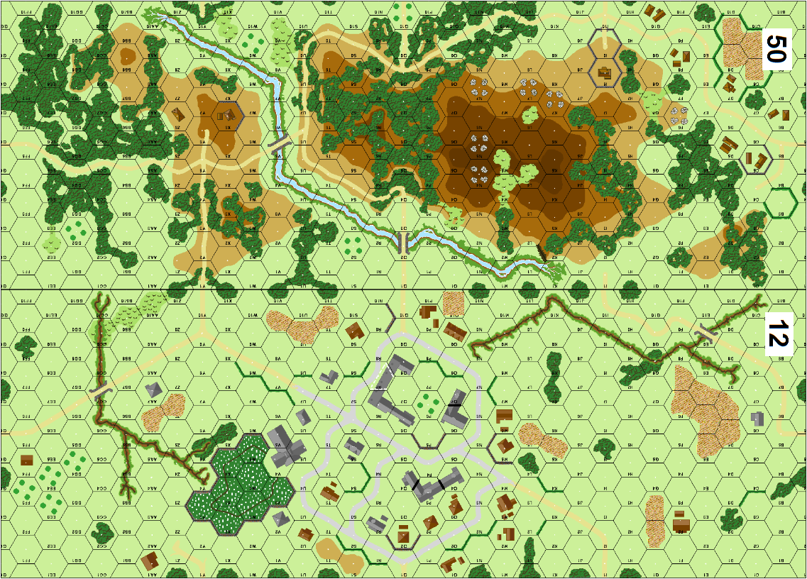 | Misc Rules: | All bldgs are single story, Bd 12 Marketplace is treated as a factory. D: Infantry are SS. |