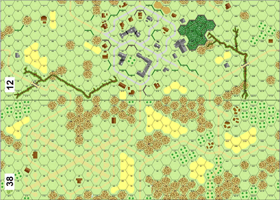 | Misc Rules: | Night rules, initial NVR is 2. Treat Woods/Marsh/Brush/Ponds as Scrub |