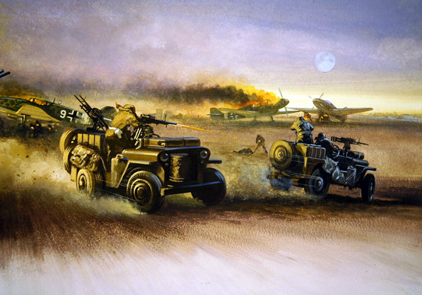 Under the code name Hyacinth, T1 and G1 patrols of the Long Range Desert Group were sent out from Allied lines to cross the Great Sand Sea and then northwest to raid the enemy airfield at Barce. Under cover of darkness, the LRDG vehicles stormed the field and set numerous aircraft alight, only to be counterattacked by Italian tanks, changing the raid to a game of cat and mouse.Attacker: British (No more details)
