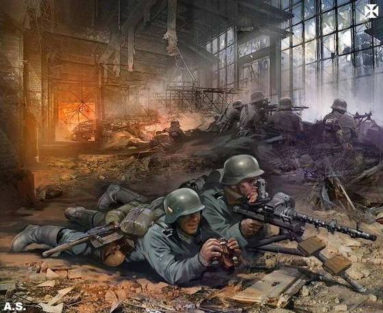 The Germans launched the attack into the Barrikady factory area on 17 October. Bloody fighting ensued for several days. The Germans attacked south down the railway, and eventually penetrated east of it, but at a high cost for each meter of ground. The troops on both sides had become exhausted. The Russians formed factory workers into militia units and put them into the factories to fight. Each day of fighting was bitter, with much blood spilled and the 24th was no different. German forces crashed into the factory complex and entered the work halls. A back and forth battle raged, with individual rooms changing hands numerous times.Attacker: German (Reinforced elements 389th Infantry Division)