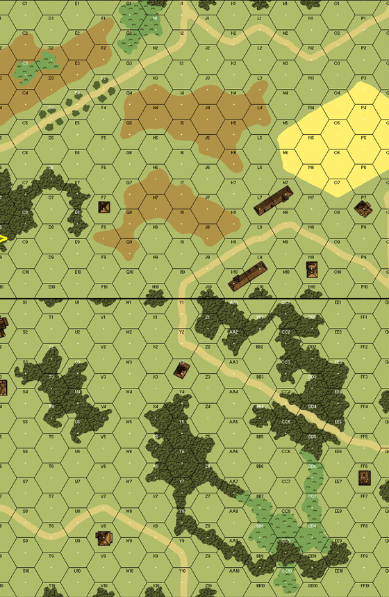 The Germans, after a week of relatively easy victories, approached a small Lithuanian village amidst the forest. Army Group North was among the first Germans to encounter heavier Russian tanks. These monsters dwarfed the German AFVs, and it was quickly discovered that they were not easily beaten with firepower. Turning to their tactical advantages of numbers, speed, and manueverability, the German forces would often byass these strong points and then reduce them at their leisure. That was not an option in this case. . . . .In a fairly large battle from the opening days of Operation Barbarossa in 1941, 10 Russian squads must defend a village from an attack by 12 German squads. The Germans are supported by six tanks of various types, while the Russians have an infantry gun and two tanks, one of which is a nearly invincible KV-2.Attacker: German (6th Panzer Division)