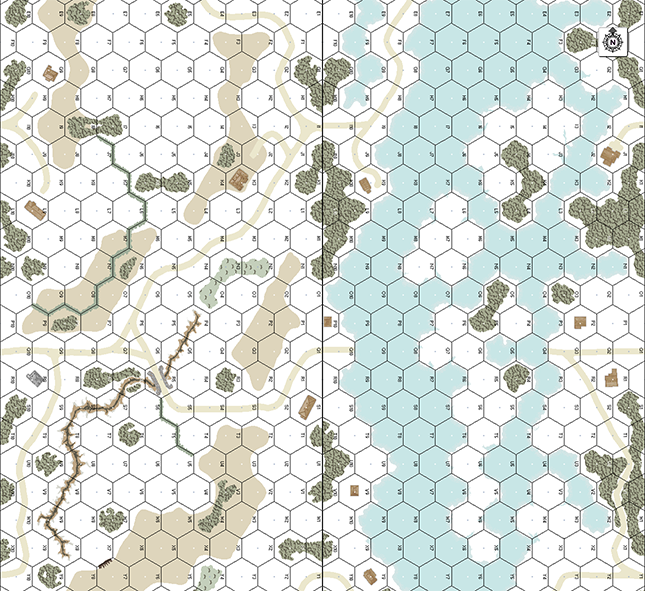 I've played this scenrio twice, once as both sides. The Russians won both times. In this one, Mike set up a reverse slope defense and I was able to quickly cross the river and establish a bridgehead and hold until last turn advance onto hilltops. He was unable to break enough to deny the Russians.