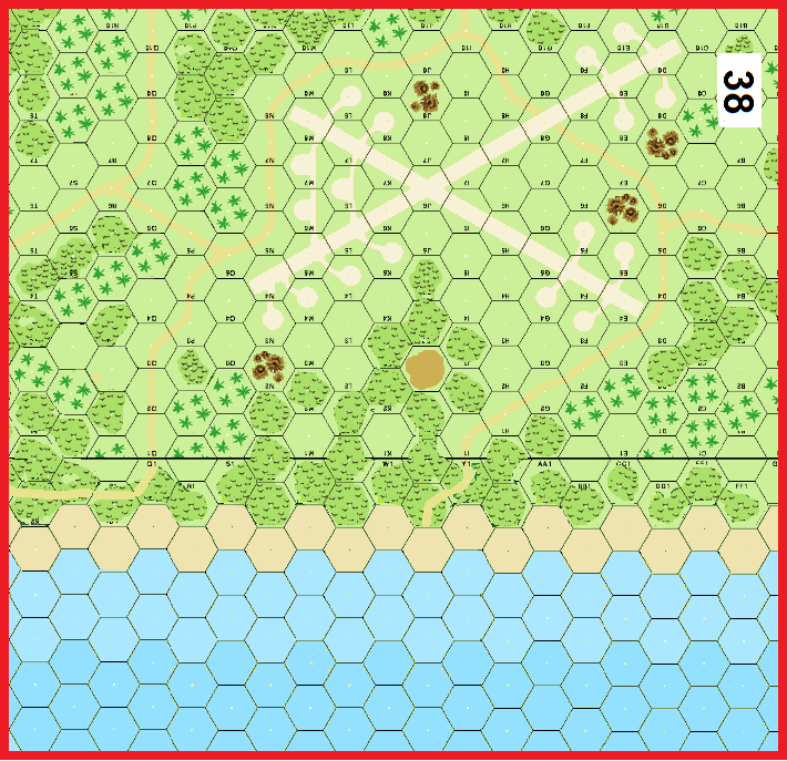 | Misc Rules: | Night (E1): Turns 1-3. Coral Soils. A: Air (E7), Seaborne Assault (G14), D: PB (B30) |