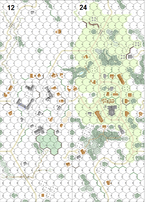 A German attack from Odeigne toward Grandmenil required the clearing of the village of Freineux. Believing the approach to the bridge over the Aisne River was mined, the Germans split into two groups and forded the river. Three Panther tanks were knocked out before the remaining tanks and a small group of SS infantry reached the outskirts. The battle for Freineux was on. . .Attacker: German (SS) (1st Platoon, 2nd Company, 2nd SS Panzer Regiment and 1st Platoon, 1st Company, 3rd SS Panzergrenadier Regiment "Deutschland", 2nd SS Panzer Division/2nd Company, 2nd SS Panzer Regiment, 2nd SS Panzer Division)