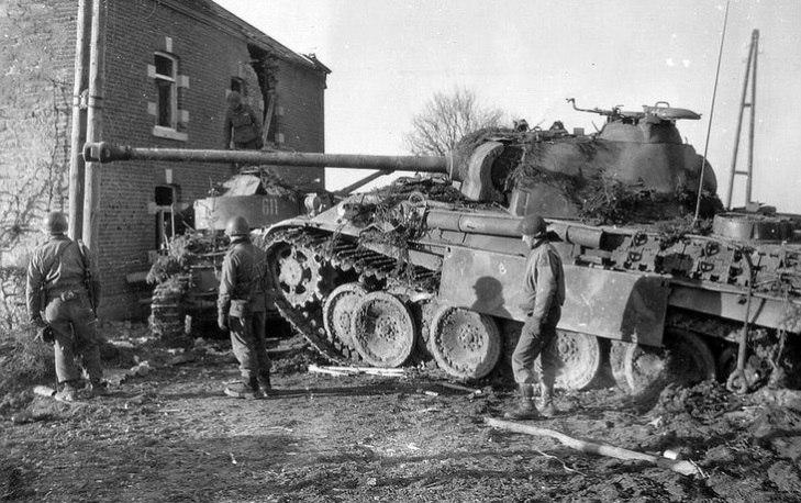 The 116th Panzer was looking for a safe bridge across the Ourthe. The U.S. setup a hasty defense with a roadblock comprised of various supply and rear echelon troops. At 0900 hours, a group of four Panthers with supporting infantry began to move towards Hotton in the mist in order to probe the U.S. defense and, if possible, to secure the bridge. The Amercans waited for some reinforcements from the 3rd Armored Division.Attacker: German (Kampfgruppe Bayer, 116th Panzer Division)