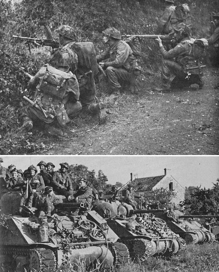 The brigadiers commanding 69th Infantry and the supporting 8th Armoured Brigades had accompanied B Squadron of the Dragoons Guards up Hill 102, south of Cristot. Opposition was light, but infantry would be needed to secure the position. The Green Howards were summoned, and looked with dismay at the difficult country they would have to cross. At least only slight opposition was anticipated. Unbeknown to the Green Howards or their brigadiers the Hitlerjugend Division appreciated the value of the hill and, following the British recce, slipped reinforcements into the position.Attacker: British (D Company, 6th Green Howards / B Squadron, 4/7th Royal Dragoon Guards)