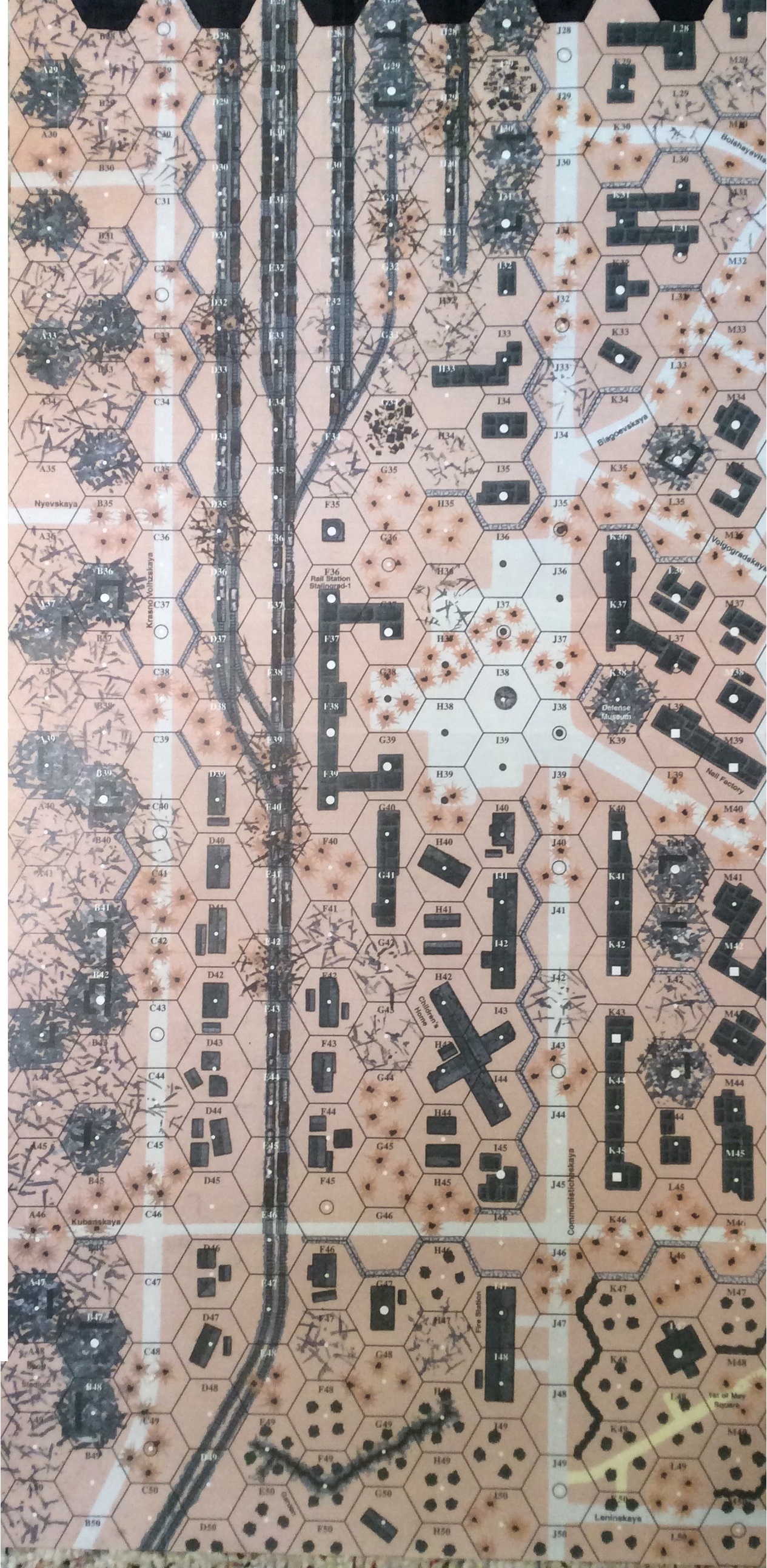 On September 14th Col. Roske’s Infanterie Regiment 194 entered the downtown district of Stalingrad, pausing to regroup as it approached the Central Rail Station Stalingrad-1. Roske appraised the imposing obstacle of the main station’s concrete terminal building, and wary of getting bogged down fighting for it, he decided to bypass it to the north through the railyards. His regiment’s attack quickly broke through the lightly armed NKVD units and thrust to the bank of the Volga. The Division commander, General von Hartmann, had warned Col. Roske earlier in the day about his exposed right flank, as the 194th’s sister regiment, the 191st, was lagging well behind. As a result of Roske’s rapid advance to the riverbank, his regiment’s right flank was even more exposed, so von Hartmann ordered the two battalions of the 191st Regiment to quickly push eastward and align its front with that of the 194th Regiment. Sitting squarely in the path of the 191st Regiment was the Central Rail Station terminal, which was currently being defended by elements of Col Sarayev’s 10th NKVD Division. The Landsers of the 191st Regiment were soon to discover why Roske had feared attacking the Rail Station earlier.Attacker: German (Bataillon I and III, Infanterie Regiment 191 and StuG Abteilung 241)