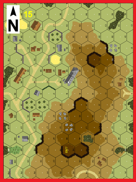 | Misc Rules: | EC Moderate. A: may enter east, west or south edge w D: Pillbox, Trench4, Wire2 |
