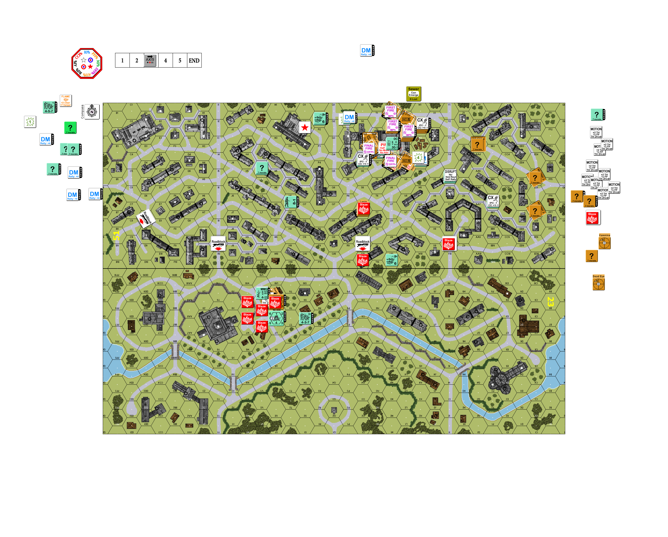 | Misc Rules: | No unit may start Concealed. D: MOL (A22.6), Hero can utilize Sewer Movement (B8) |