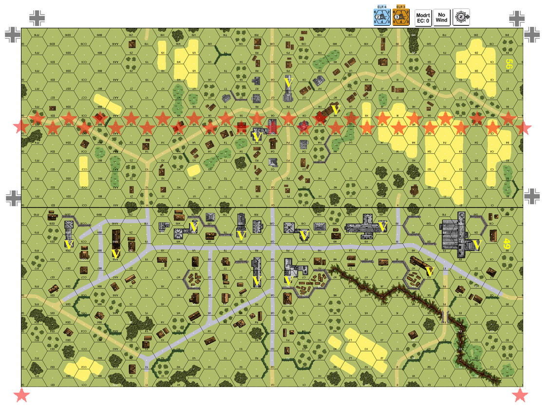 | AFVs: A:6 PzKpfw IVE x 3 PzKpfw IIIH x 3 |