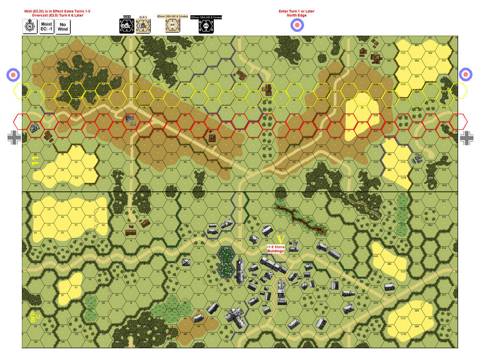 | Misc Rules: | Mist (E3.32) Turns 1-3, Bocage (B9.5) A: Bombardment (C1.8), D: FB (B23.9). |