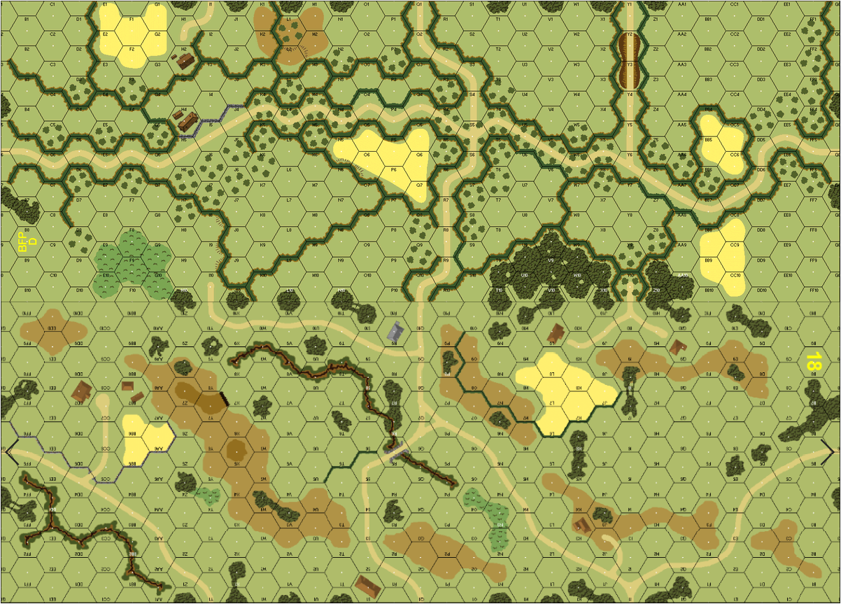 | Misc Rules: | 10 Shellholes placed; costs AFVs 3MP+COT to enter. D: PzVGs are dug-in |