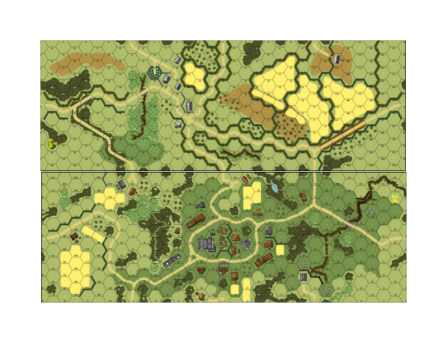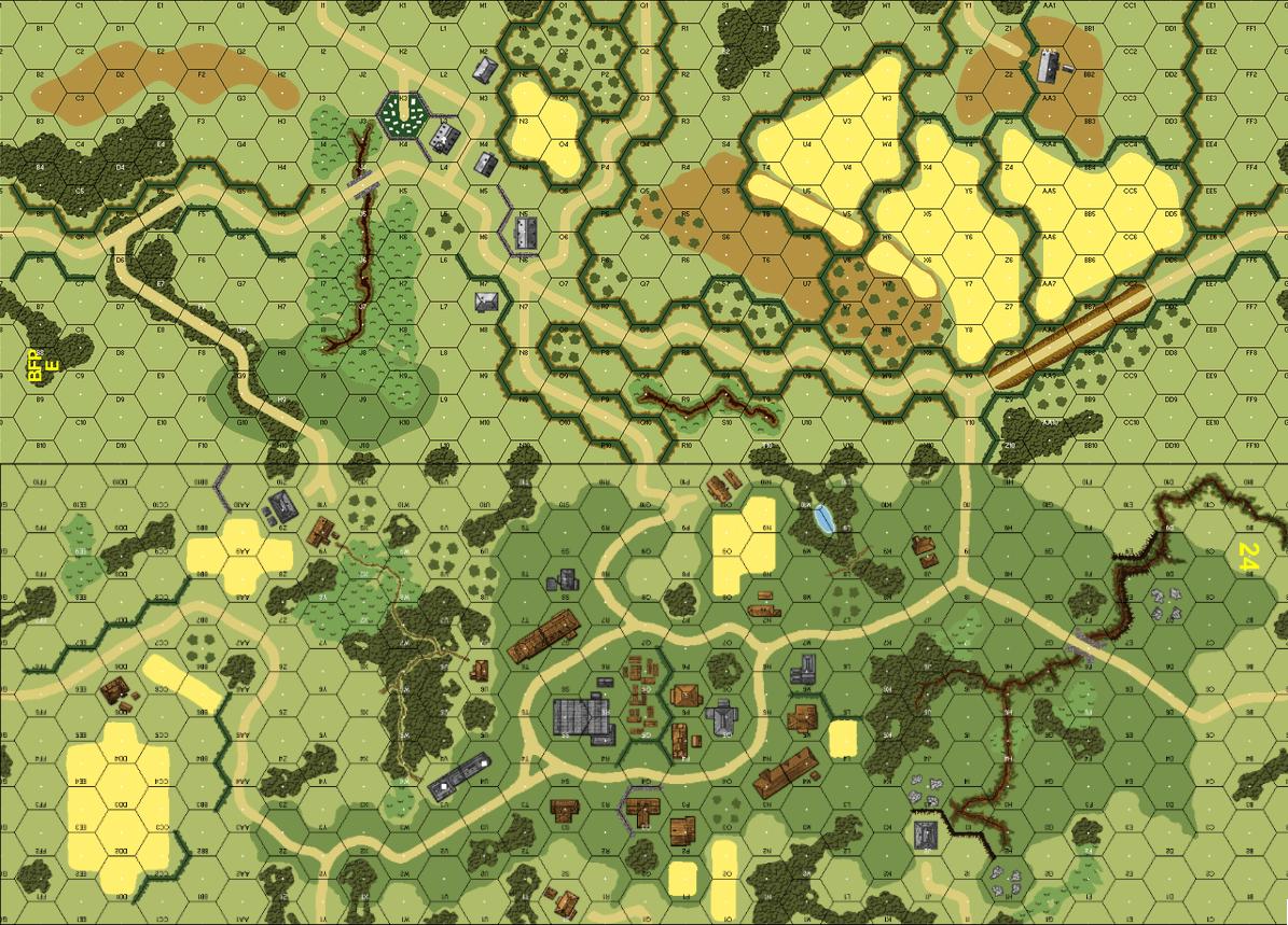 | Misc Rules: | Building 24U4 is two-story house. 10 Shellholes placed; costs AFVs 3MP+COT to enter |
