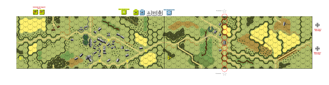| Misc Rules: | Hedges are Light Bocage (BtB 3). D: may not set up HIP or emplaced. Air Support |