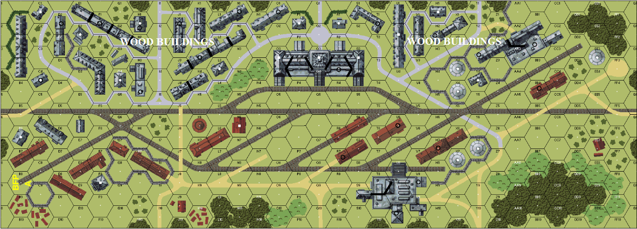 | Misc Rules: | All buildings are Wooden. All sides have potential reinforcements. Three player |