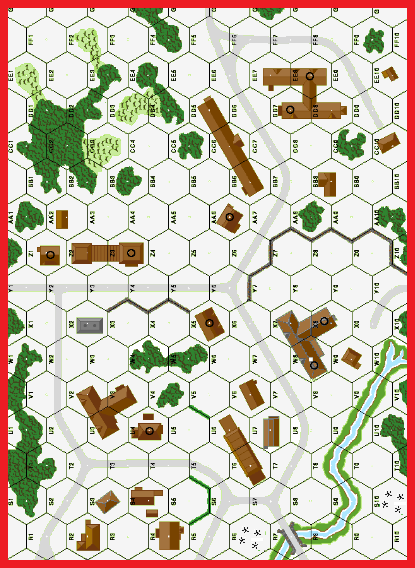 | Misc Rules: | GS (E3.72), Bldgs: Wooden, AFV/Guns must set up in OG or road hexes. A: WC (E3.712) |