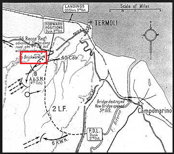 A nighttime advance towards San Giacomo by the 8th Argylls had only stirred up the isolated German units that were encountered, one of which was a tank harbor. Lt. Col. Elliott of the Argylls knew that he could not continue his advance without his heavier support weapons and just as this was being considered, firing was heard coming from behind his advancing troops. The rear area perimeter, clustered around a brickworks and nearby farm, was under attack by German armor.Attacker: German (Elements of the 16th Panzer Division)