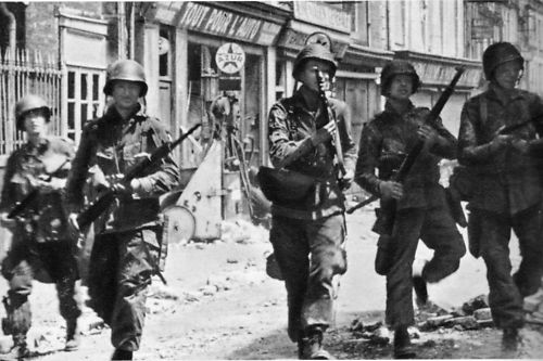 The key to the initial assaults on the Cotentin Peninsula was the town of Carentan. Control of this vital town of approximately 4000 people would allow Utah and Omaha beach to be securely joined. At approximately 0530 on 12 June, elements of the 101st Airborne under the command of artillery commander Brig. Gen. McAuliffe deployed for the attack scheduled to start at 0600. The initial assault instantly bogged down with well-sited machine gun fore pinning the paratroopers along the road into Carentan, but company commanders rallied their troops and quickly grabbed a foothold in town. Now came the difficult task of capturing the town as well-trained paratroopers began clearing building by building.Attacker: American (506th PIR, 101st Airborne Division)