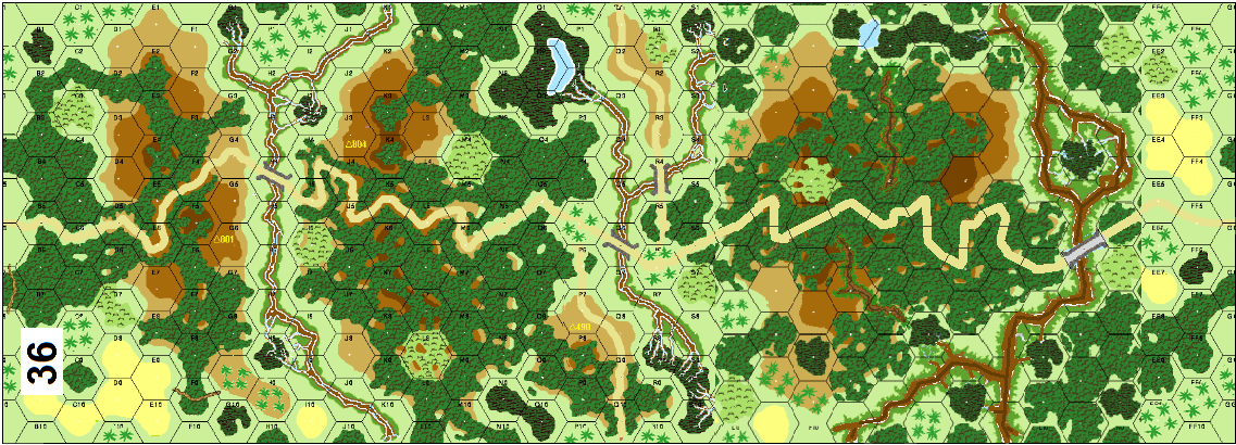 | Misc Rules: | PTO (G.1), LJ (G2.1) Exc: Roads and Bridges exist. Streams: Gullies. |