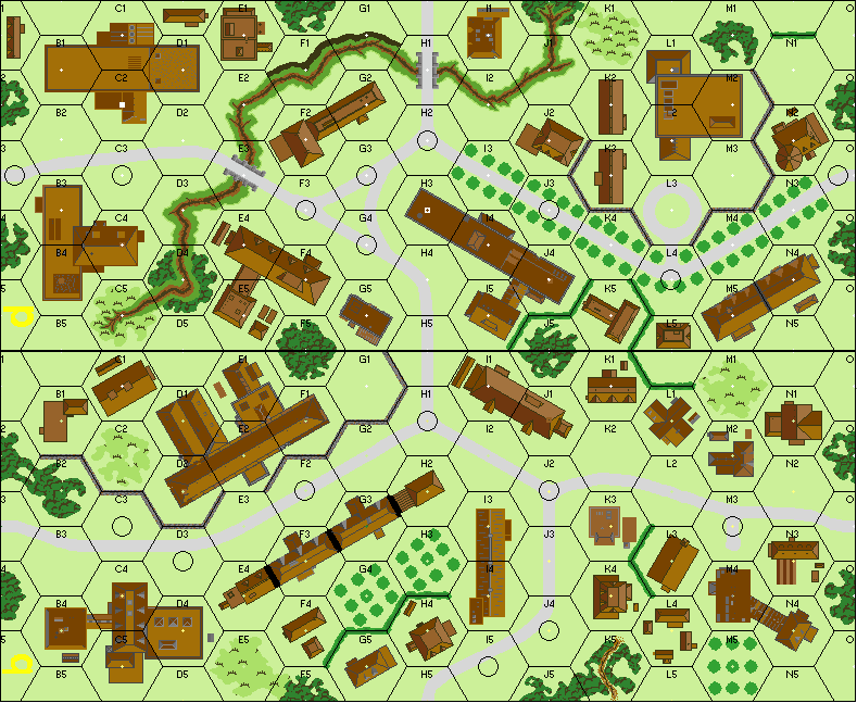| Misc Rules: | Bldgs: Wooden, single story. Shellholes added before game. A: FTV (D3.6) |