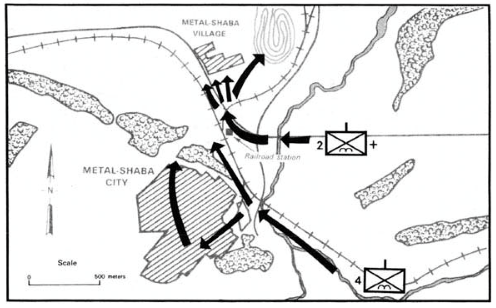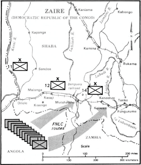 Shortly after midnight on 11 May 1978, 3,000 to 4,000 members of the FNLC slipped quietly into Zaire from Zambia. Organized into 11 "battalions," each with about 300 men, the force divided into 2 groups and pushed on in the darkness. One group of around 1,000 men headed toward the town of Mutshatsha to cut the railroad. The second had a more important mission: to seize the city of Kolwezi. Five thousand miles away on the island of Corsica, the phone rang in the headquarters of the 2d R.E.P. General Liron, commander of the 2éme Brigade Parachutiste, was calling for Lieutenant Colonel Phillipe Erulin, the 2d R.E.P.'s commander. Taking the phone, Erulin was surprised to hear that he had six hours to prepare his unit for deployment to Zaire. The French did not approach the problem as an evacuation operation. The 2d R.E.P., acting under Gras' orders, was going to Zaire to kill rebels in order to save Europeans. The 2d R.E.P. got into the most serious fight of the operation when Erulin ordered the 4th Company to scout out the rail station at a village north of MetalShaba.Attacker: French (2nd and 4th Companies 2nd R.E.P.)