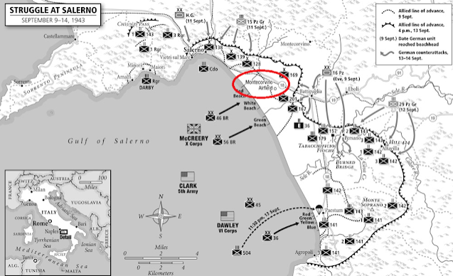 The 2/6th Queen's battalion under Lt. Col. Keighley from the 169th Brigade was assigned the task of securing the Montecorvino airfield. Facing them were the men from the 2nd Battalion, 10th Panzer Grenadier Regiments. Unfortunately, the Shermans from 'C' Squadron Royal Scots Greys assigned to support the Queen's were delayed at the beaches, forcing the men from the Queen's to attack across open terrain. That attack failed. Now supported by the tanks, the Queen's infantry tried again. The well dug in panzer grenadiers has their own armor support, some now hidden among the wreckage of burning planes.Attacker: British (2nd/6th Queen's Royal Regiment, 169th Brigade and C Squadron, Scots Greys)