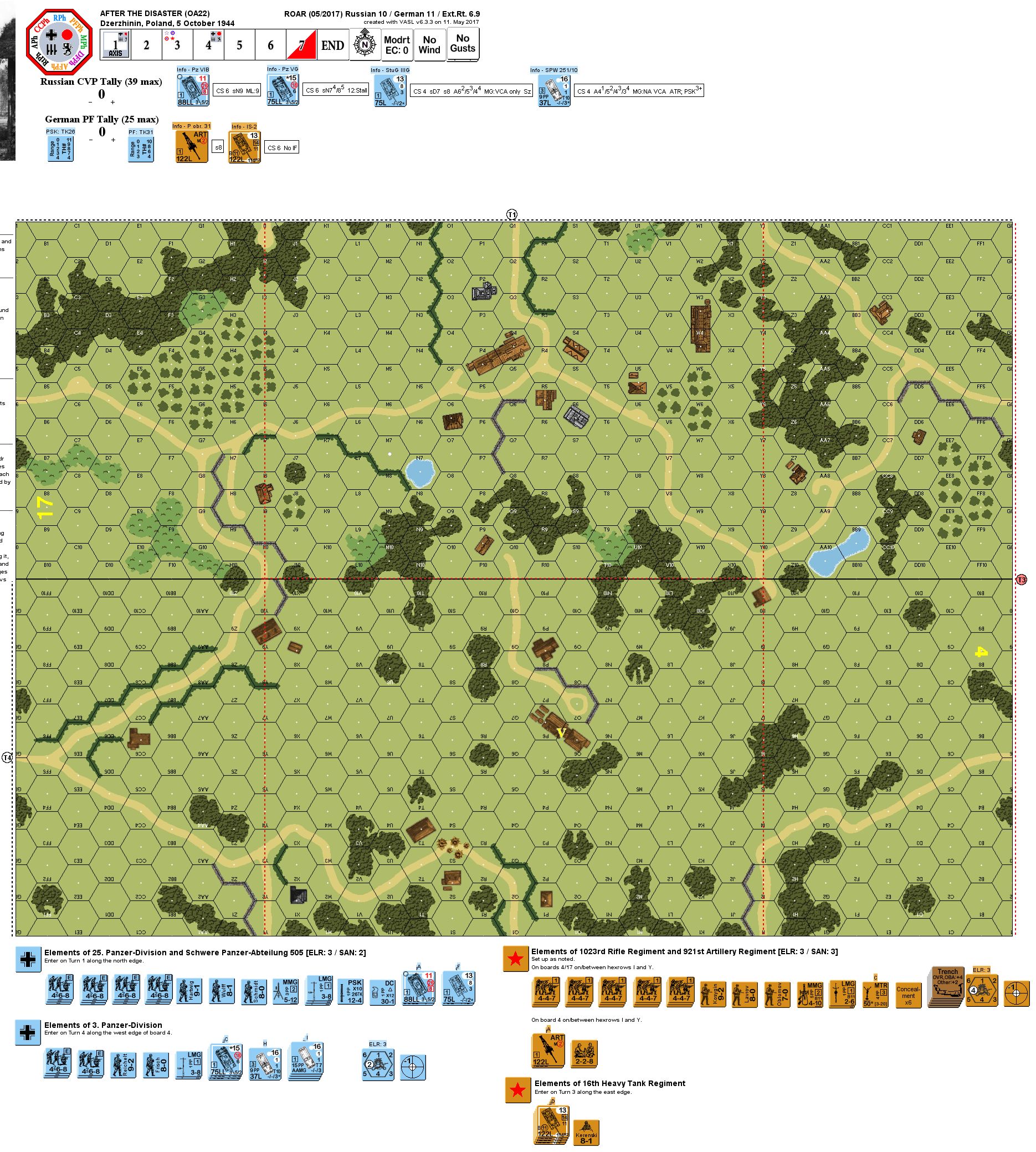 | AFVs: A:12 PzKpfw VIB x 2 StuG IIIG x 2 PzKpfw VG x 3 SPW 251/1 x 4 SPW 251/10 |