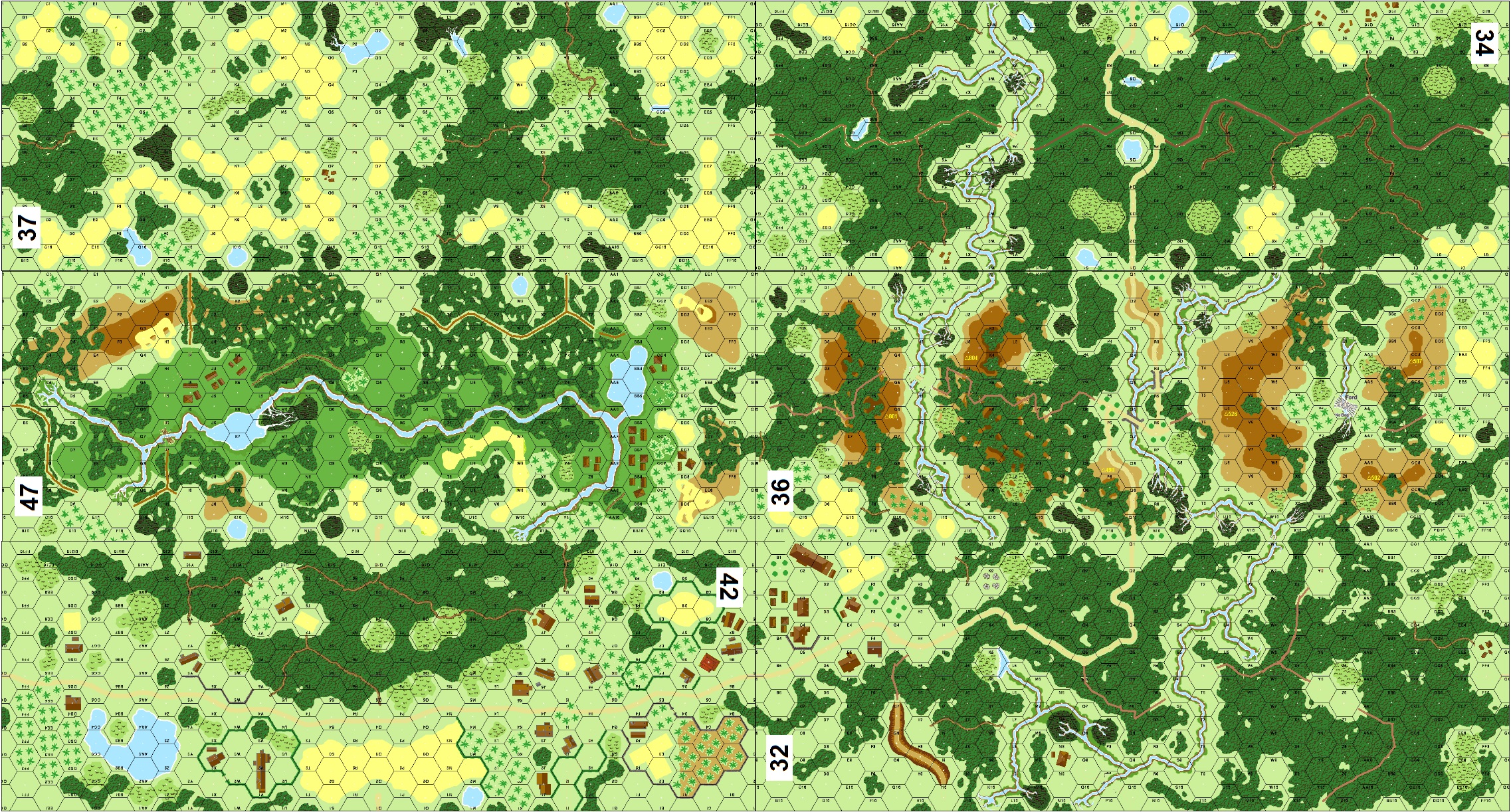 | Misc Rules: | PTO, LJ. (Exc: 1 road w bridges exists). Wooden buildings. A: Air Support w D: no HIP, BT Level A |