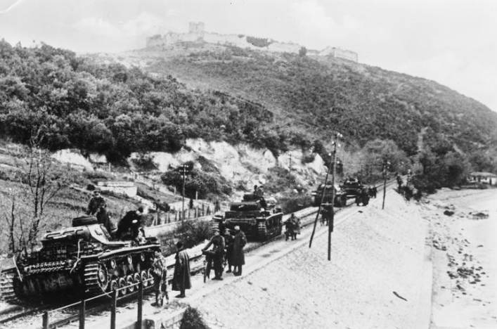 The Germans launched Operation Marita on 6 April, invading Yugoslavia and Greece. While other elements of the XVIII Mountain Corps attacked the Metaxas Line in Greece, 2nd Panzer Division attacked through Yugoslavia. The 2nd Panzer broke through on 9 April and after several days of tough fighting, the Metaxas Line was also broken, forcing the collapse of Greek forces east of the Vardar River. The attack continued and on 13 April the British decided to begin a general withdrawal. This plan required the coastal pass of Platamon to be held, a task which fell to the New Zealanders. The Germans were forced to take a tactical pause for the logistic elements to catch up, and were unable to attack this area until 15 April, providing time for the defenders. The first position was a dilapidated castle near Pandelejmon, which dominated the ridge over the coastal pass. German troops on motorcycles and tanks attacked twice but the 21st Battalion of New Zealanders held.Attacker: German (Elements of Kampfgruppe Balck, 2nd Panzer Division)