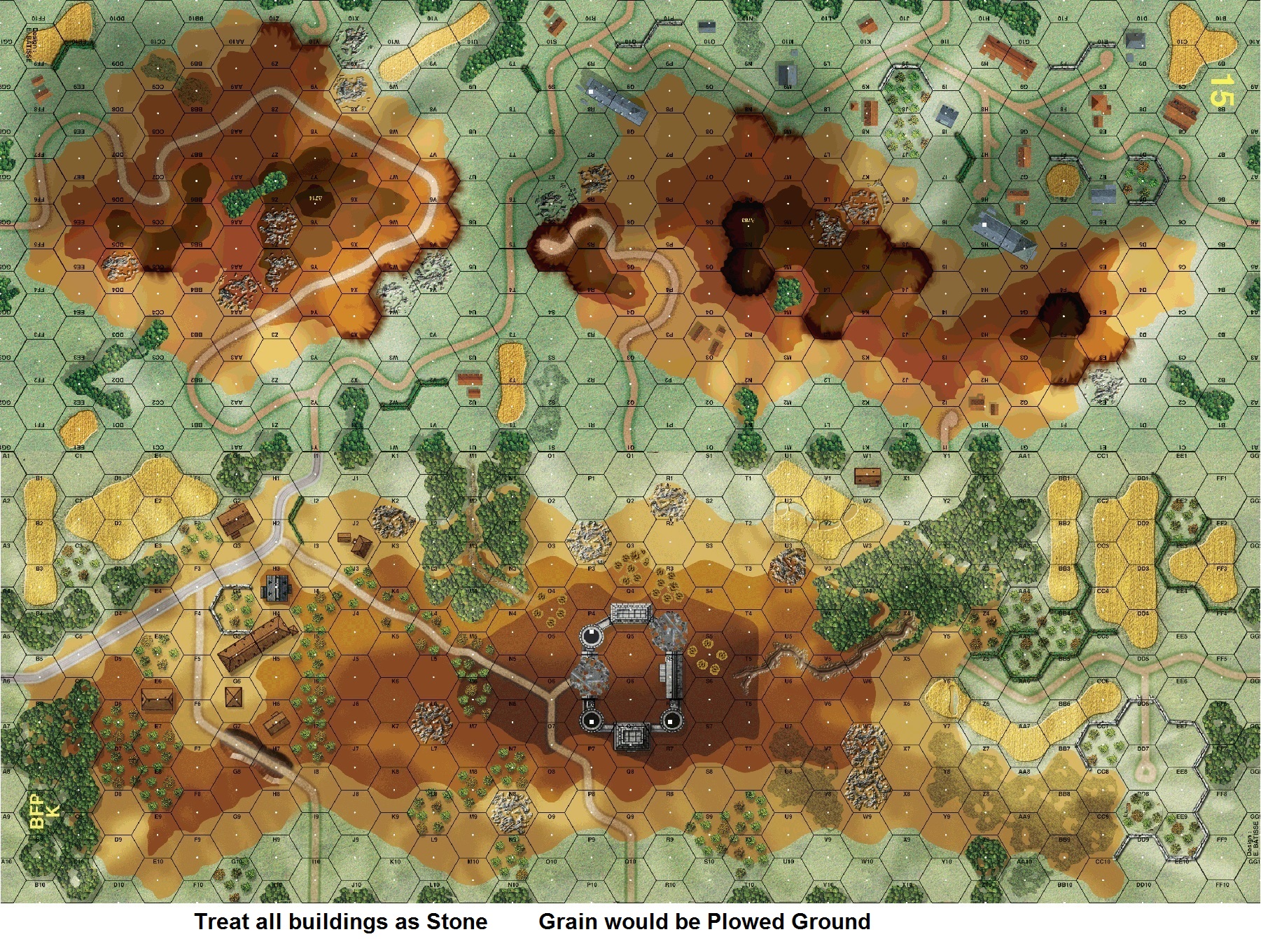| Misc Rules: | Stone buildings. Castle: ground level locations Fortified, rooftops in effect. |