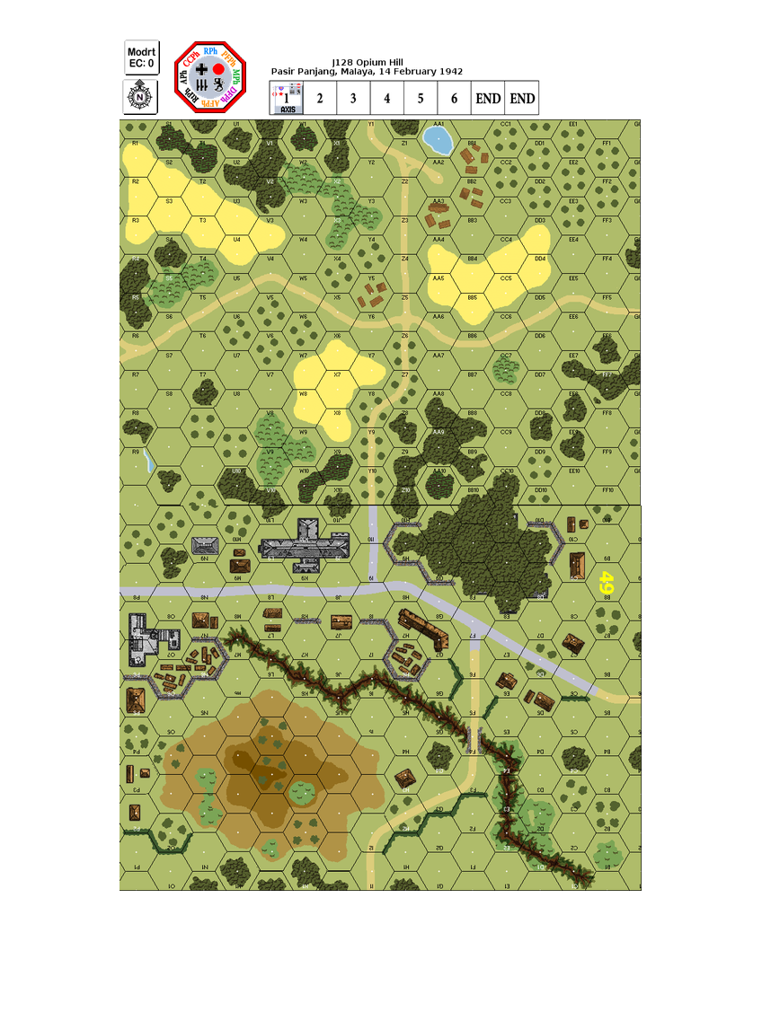 During the course of the Malayan campaign, the IJA landed in the north-western parts of Singapore on February the 8th. After the capture of Tengah airfield, the Japanese invading force, consisting of some 13.000 troops, moved south towards Pasir Pajang, known as “the gap”. Reaching their target on February the 13th, the Japanese were engaged by troops of the 1st Malayan Brigade, which was formed by indigenous soldiers led by British officers. The Japanese launched a heavy attack, supported by artillery and tanks which, after heavy fighting, including hand-to-hand combat, forced the defenders to retreat. Keeping up the pressure, a second attack followed on the morning of February the 14th. Both sides took heavy casualties, but finally the Malayan Regiment again was forced to fall back. One of their units, “C” Company, received orders to move towards “Opium Hill”, forming a last defense line. (FORMERLY RELEASED AS "Bukit Chandu" GRE4)Attacker: Japanese (56th Infantry Regiment, 18th Division)