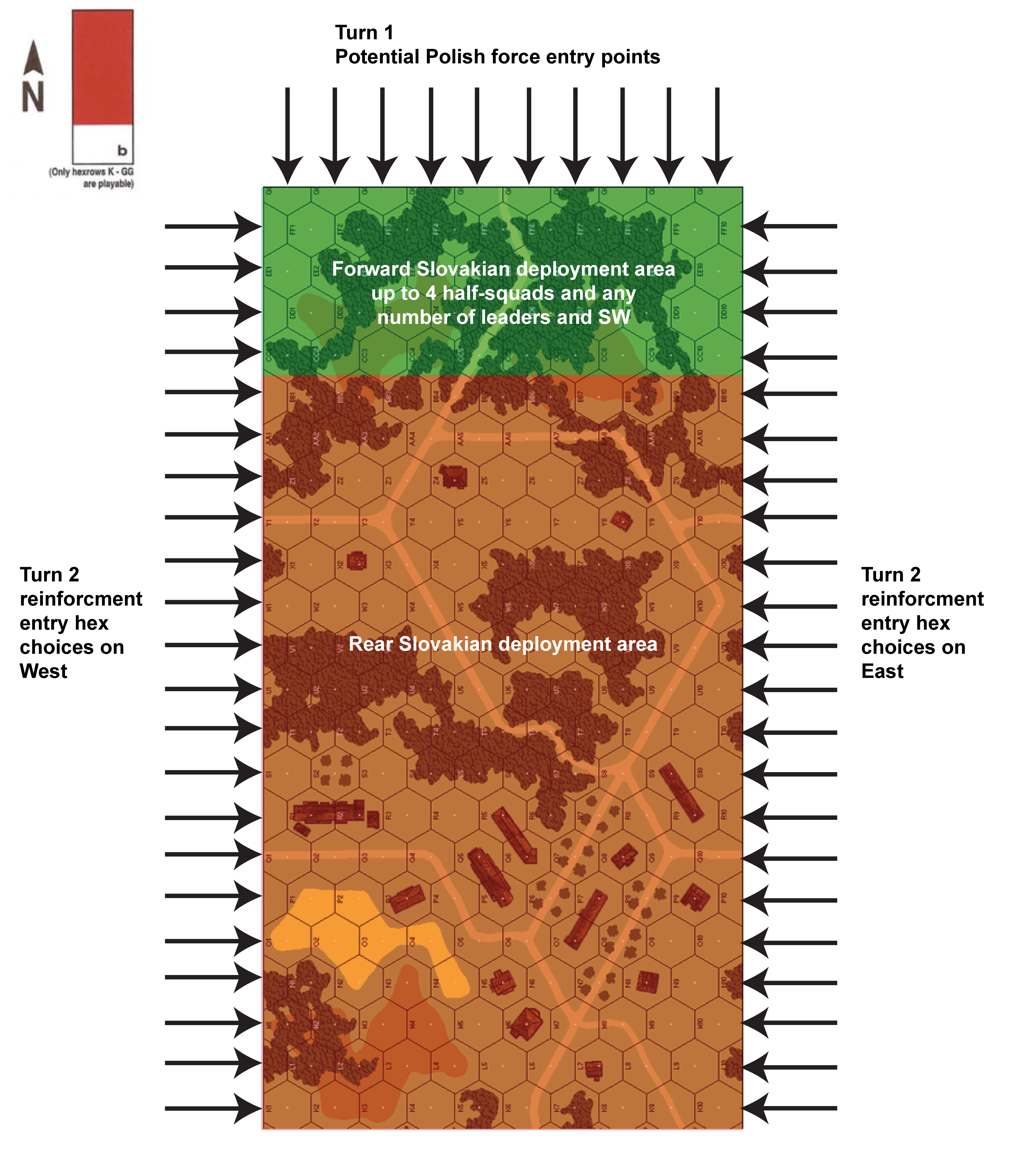 | Misc Rules: | A: entry hex of reinforcements from east or west is secret |