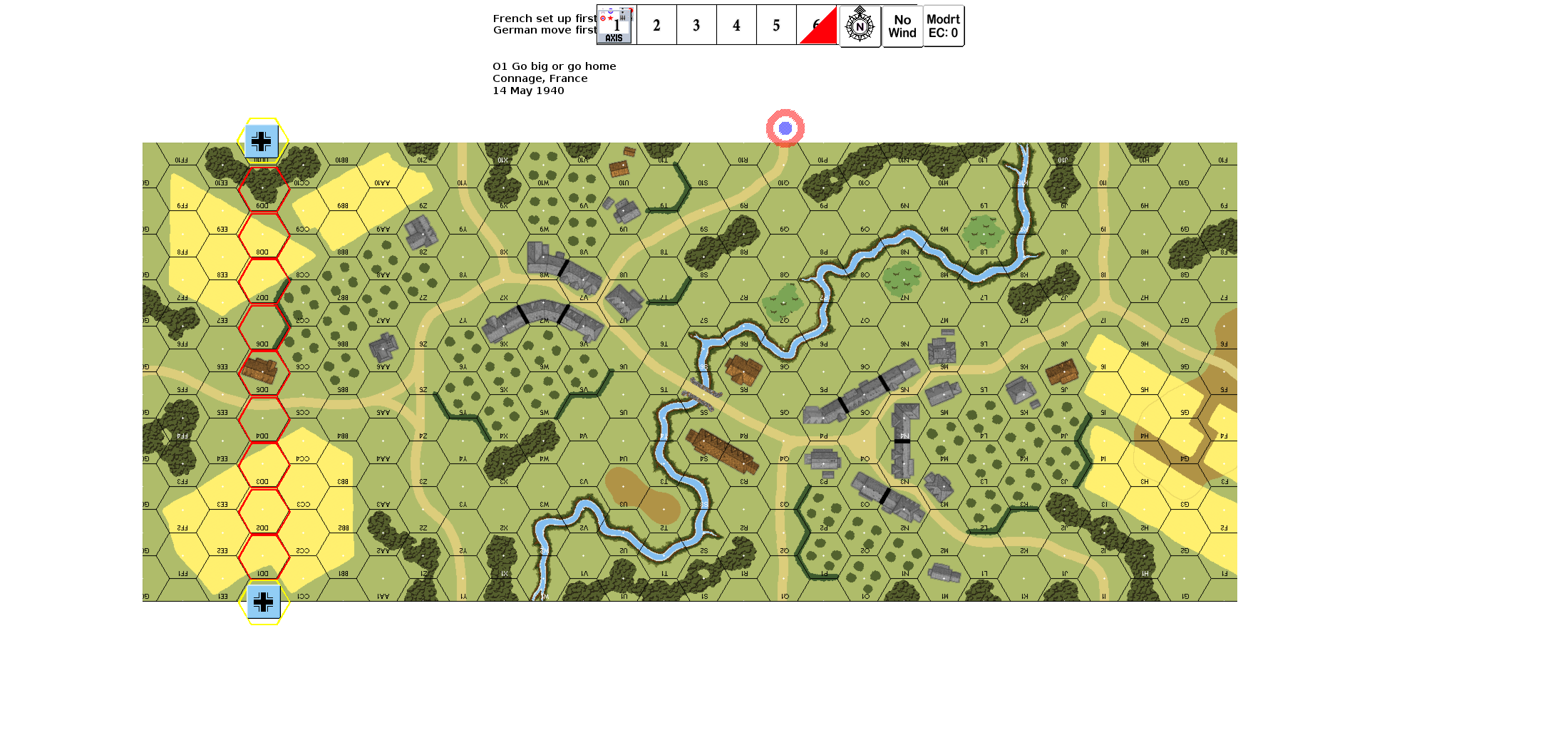 | Misc Rules: | French 25LL Canon sets up on S5 bridge, concealed but not Emplaced. |