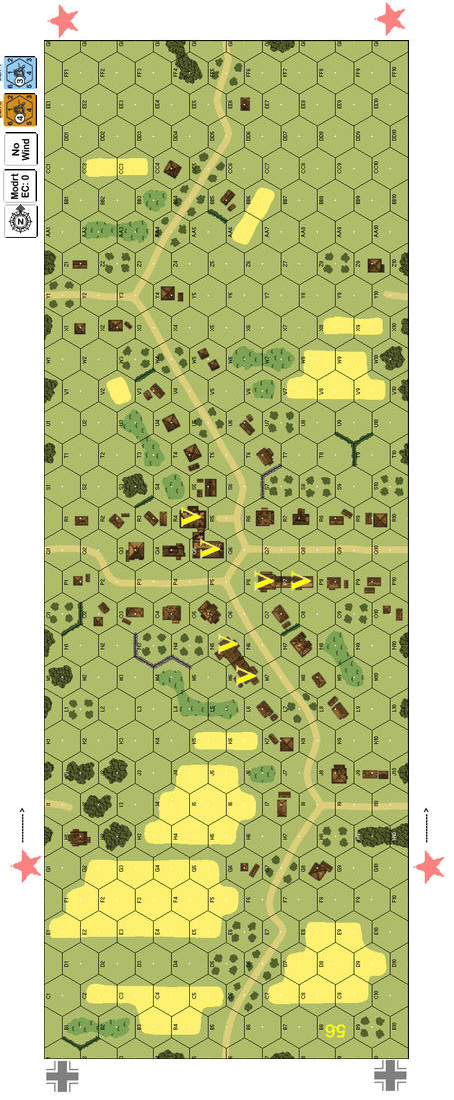 | Misc Rules: | Wooden Buildings, ground level only. D: T-70 is Dug-in AFV (D9.54) |