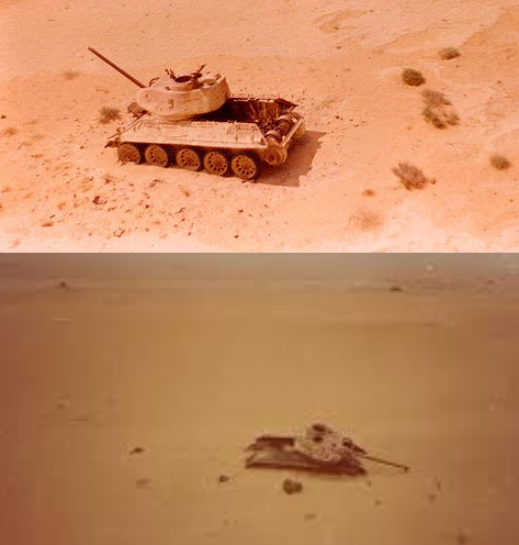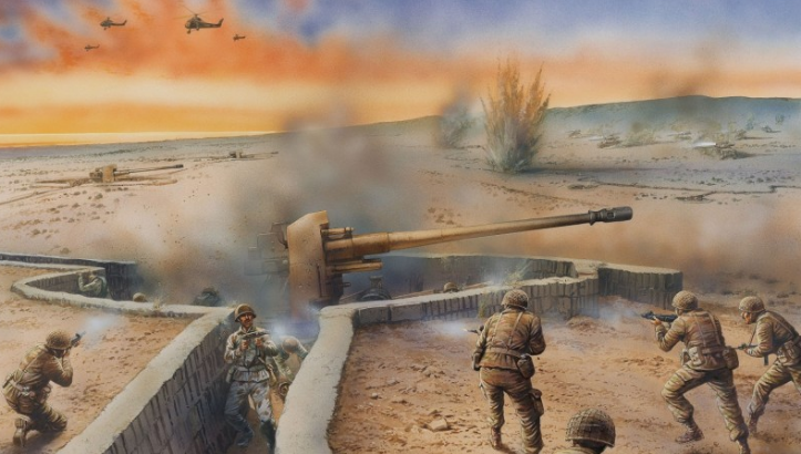 The key to conquest of the Sinai front was the Abu-Ageila road junction. Significant Egyptian forces stood in the way, including 100,000 soldiers and over 900 tanks, backed by a massive quantity of APCs and artillery. A numerically inferior Israeli force planned on using the element of surprise, timing ground attacks with the IDF/AF strikes on Egyptian airfields. The southern division, commanded by Major General Ariel Sharon faced heavily defended enemy positions manned by the Egyptian 2nd Infantry Division, bolstered by a battalion of tank destroyers and a tank regiment. Sharon's plan sent two of his brigades north to Um-Katef, tasked with breaking through the enemy lines at Abu-Ageila to the south and to block the road to El-Arish.Attacker: Israeli (Elements of 14th Armored Brigade)